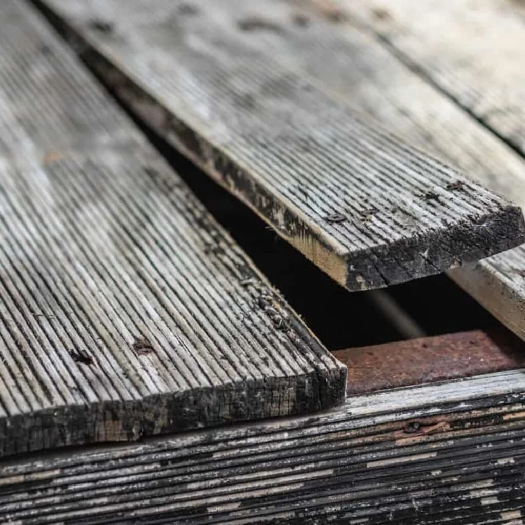 Yukarıdaki diyagramda görülen ahşaptaki nemin bu ani ve sert değişimleri mantar hastalıkları ve küf için ideal koşul yaratır; bu da ahşabın çürümesine yol açar (türüne göre erken veya geç). Ahşap çürümesi durdurulamaz, yavaşlatılabilir – ilkbahar başında yapılan yıllık bakımla; böylece yazın deking platformunun keyfini çıkarabilirsiniz. Bu keyif m² başına 8€ maliyetle gelir; çünkü bakım basit değildir ve platform büyüklüğü ne olursa olsun bir günde bitmez. İlk adım zeminin yağdan arındırılması ve yüzey patina ile kirinin alınmasıdır; bunu basınçlı yıkama makinesiyle yapmak en etkilidir.