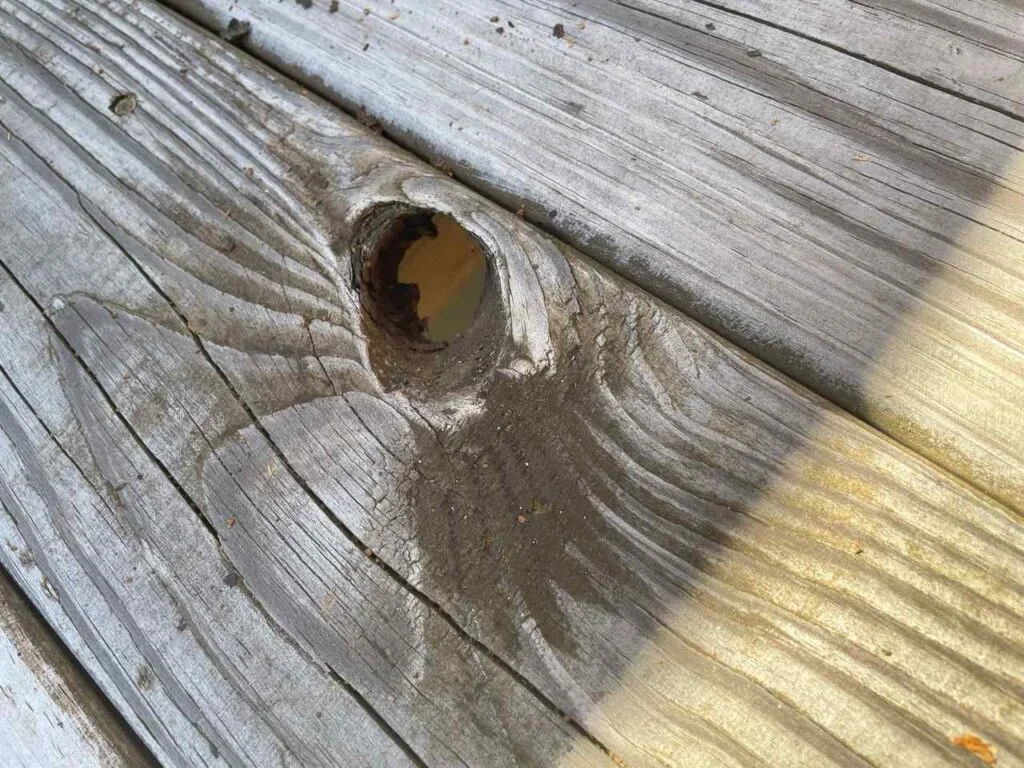 Ahşap, yani Sibirya ladini deking, yıllarca testte WPC dekinge göre daha az dayanıklı çıktı: tüm mekanik hasarlar, çatlak ve eğilme, bahçe mobilyasından tırnak izleri ve düşen budak delikleri – müşteriler Sibirya ladini seçiminden sonra en çok budak deliklerinden şikayet etti; zeminin estetiğini bozuyor.