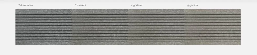 Gördüğünüz gibi WPC deking renk yoğunluğunu kaybedecek ama yavaş ve kontrollü. Bu değişimler ani ve birkaç ayda olmayacak; fark edilir veya belirgin değildir.